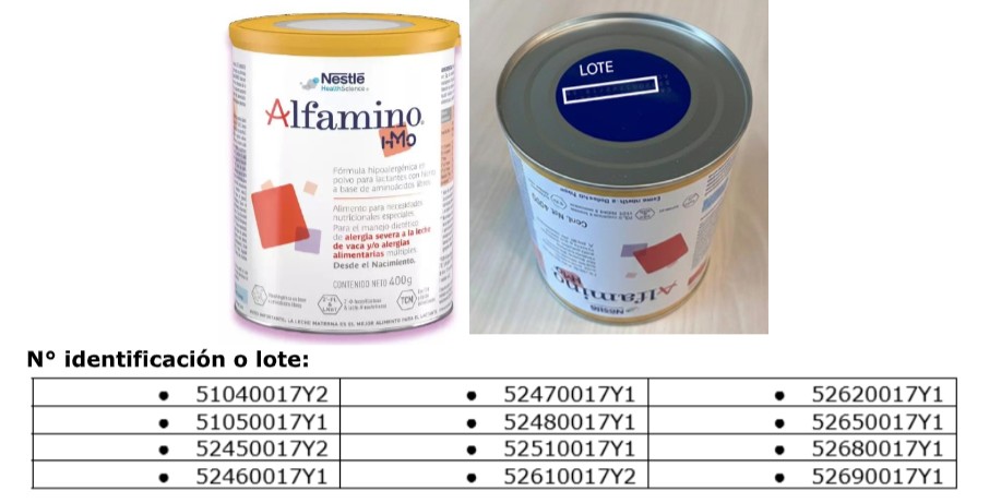 Se trata de un producto de la marca Nestlé, consumido por lactantes con necesidades alimentarias especiales. Quienes lo recibieron a través de las instituciones del Estado, como CESFAM, el MINSAL hizo un llamado a los padres o tutores a que se acerquen a los centros de salud para devolverlo y obtener su reemplazo.